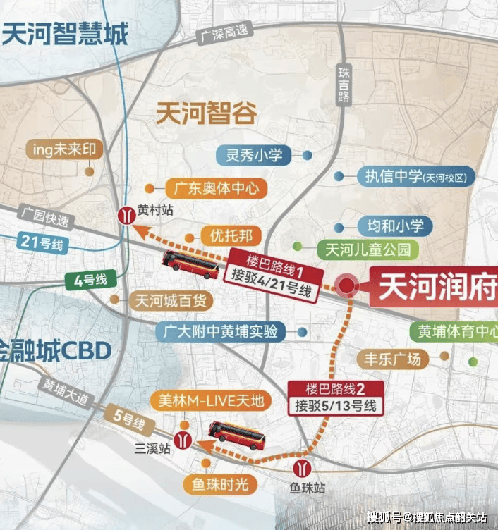 在交通方面,天河润府虽然距离已运营的地铁站有一定距离,如距离5号线大沙东站约3.6公里,但项目是市中心首个配套楼巴的社区,且从交付起5年业主免费使用。楼巴根据业主出行路线定制了两条路线,一条直达奥体中心,接驳地铁4/21号线黄村站,另一条直达鱼珠-三溪商圈,到地铁5/13号线鱼珠站,实现3站金融城,7站珠江新城。此外,项目还将配建一个公交站场,华润置地还会配建规划道路,拓宽茅岗路北延段,将由原来的单向2车道拓宽成40米双向6车道,计划2025年完工,届时自驾出行将更加便捷。