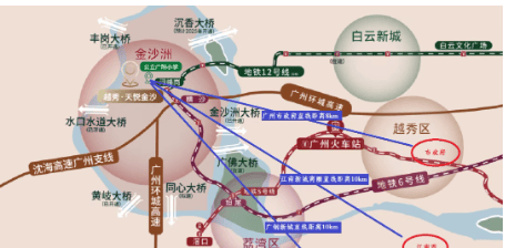 越秀天悦金沙位于金沙洲的核心区域,距离地铁6号线浔峰岗站约2.5公里,虽然步行至地铁站有一定距离,但随着广州地铁12号线的通车以及未来沉香大桥等基础设施的建设,交通条件将逐步改善。此外,项目周边有多个大型商业中心如永旺梦乐城、万达广场等,生活便利性极高。社区临近91万㎡的浔峰山生态公园和35万㎡的自然湖泊,生态环境优越。