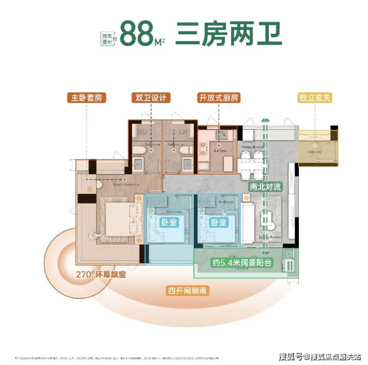 项目推出的户型面积从88平方米至108平方米不等,均为三房或四房设计,使用率接近100%,最大限度地提高了空间利用率。其中,88平方米户型为三房两卫设计,适合刚需购房者;而108平方米户型则为四房两卫设计,适合追求更高生活品质的家庭。所有户型均采用新规设计,相比板块内现有产品更具竞争力。