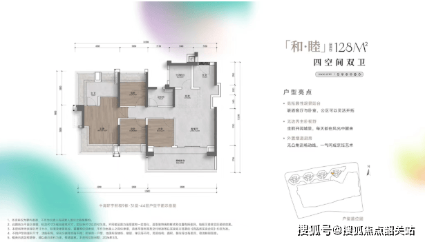 3. 建面约 128㎡ 四房两卫 —— 改善型家庭奢适之选