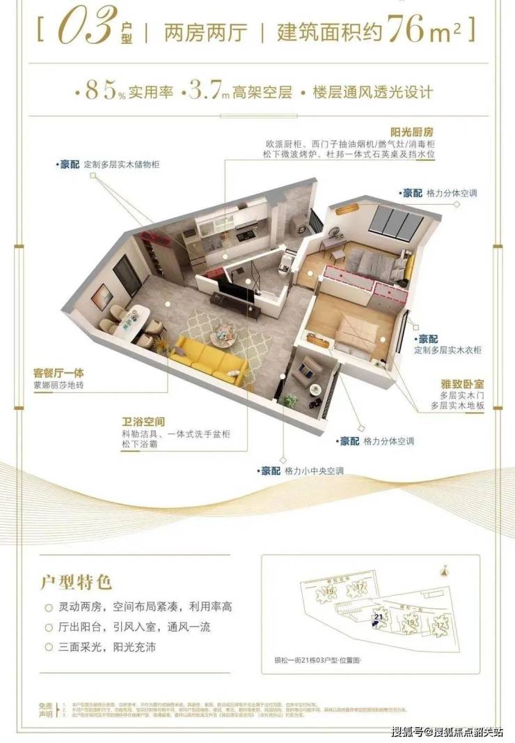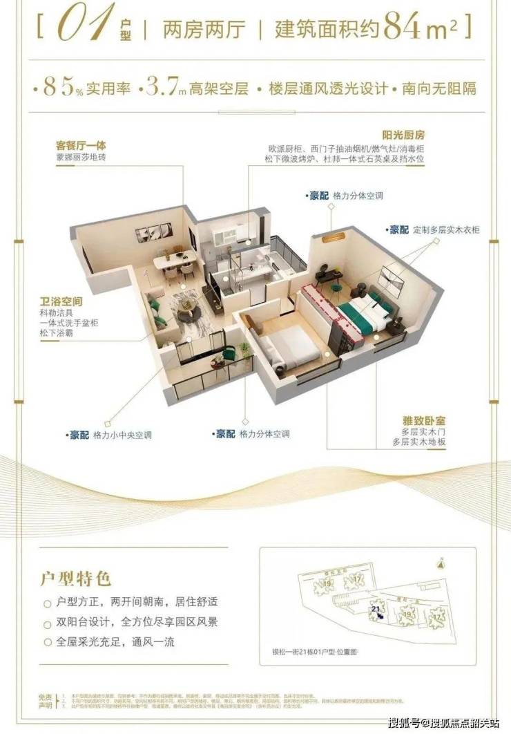 户型亮点:建面约89-143㎡三至四房,南北通透,得房率高达85%;