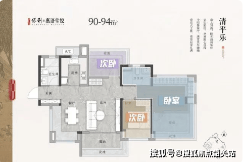 建面约90-140㎡三至四房,全南向设计,LDK一体化客餐厅,主卧270°转角飘窗。