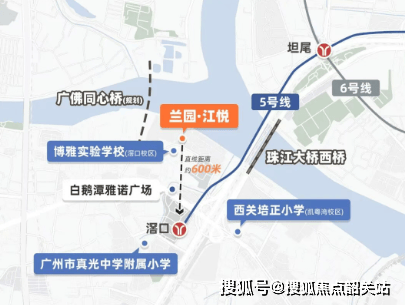 兰园江悦位于广州市白鹅潭CBD核心区域,紧邻5号线滘口地铁站,距离地铁口约1公里,出行便捷。周边交通网络发达,自驾出行可通过广佛同心桥直通佛山地区,或通过即将通车的白鹅潭大道前往广船、医药港等地,享受城市间的无缝连接。