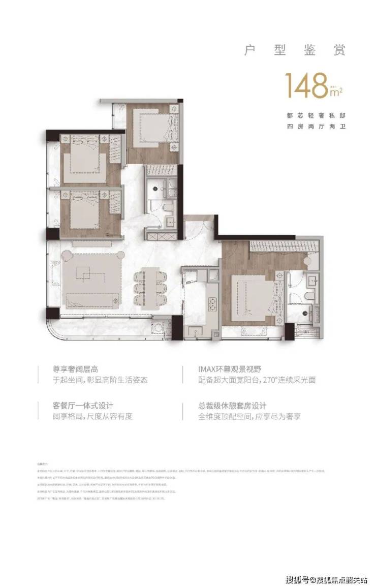 “傲云”组团共662户,其中A3栋4-28层为公寓产品,采用2梯4户设计,实用率约为70%。其户型涵盖108㎡三房、129㎡四房及148㎡四房。值得注意的是,这里的公寓户型面积段较大,打破了传统公寓狭小拥挤的刻板印象,完全可以满足家庭居住或高端办公的需求。近期加推的“云上”组团大平层,面积段更是跨越213㎡至571㎡,专为顶层富豪打造空中别墅般的居住体验。