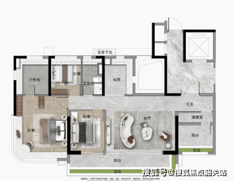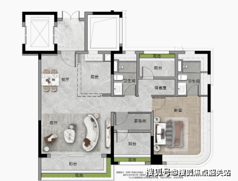 所有户型均采用了LDKG大方厅设计,并配备了270°主卧飘窗,最大化地提升了居住舒适度。