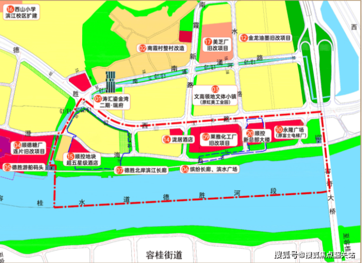 105黄金走廊(红岗科技城)、顺德工业历史文化带(德胜北岸顺德糖厂活化工程)以及马岗智造新城;