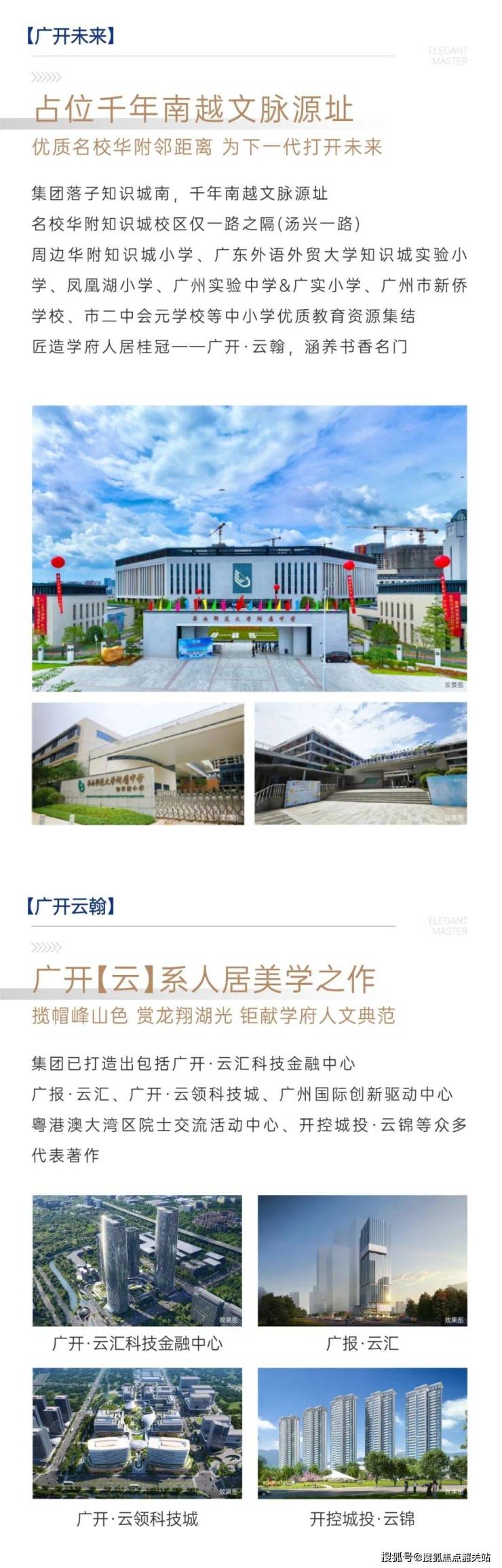 广开·云翰由深耕黄埔26载的千亿国企广开控股旗下广州辰龙置业开发,广开控股作为区域产业与城市发展的引领者,已成功打造超30个精品项目,涵盖科技园区、城市地标及高端人居。项目总占地约6.5万㎡,总建面约23.1万㎡,容积率仅2.5,规划13栋全南向“新规”住宅,是知识城首个受益新规政策的高品质社区。