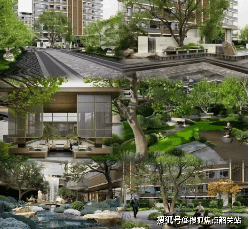 ①清芬阶:彰显门第礼仪,红枫映礼、花香拂面,行走其间,仿佛置身于岭南画卷之中;②可心台:曲径通幽,绿植环绕,让归家之路成为修心之旅,卸下一天的疲惫;③晓语间:打造茶饮雅集社交域,曲水流觞,小桥流水穿梭其间,业主可在此林下品茶、亲友小聚,享受惬意时光;④善归庭:林下静谧冥想地,取意余荫山房“明善堂”,斜飘铁冬青与各类花境植物相映,营造出静谧祥和的氛围;⑤无事亭:天伦共享户外场,可邻里相聚、家族小聚,是为岭南世家生活量身定制的“闲逸之境”;⑥吟月池:悬浮峡谷式森境,作为园林主轴核心,形成“山似有、谷似深”的景致,水光映壁、石影成趣,是社区内的赏景绝佳之地。