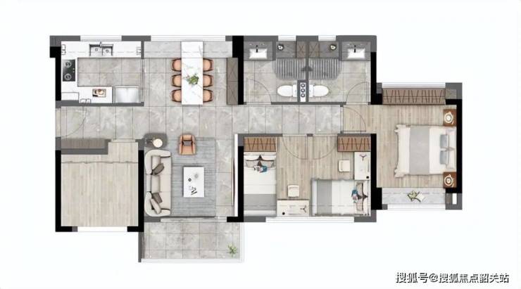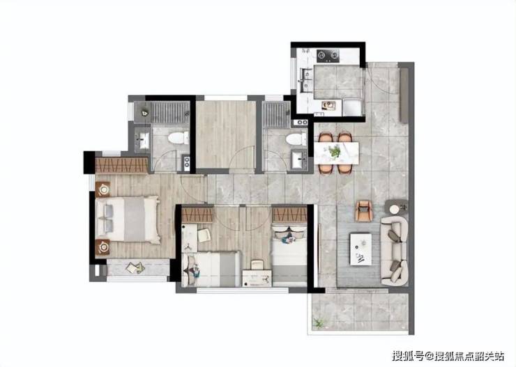 B户型丨4 房 2 厅 2 卫丨建筑面积约 89㎡