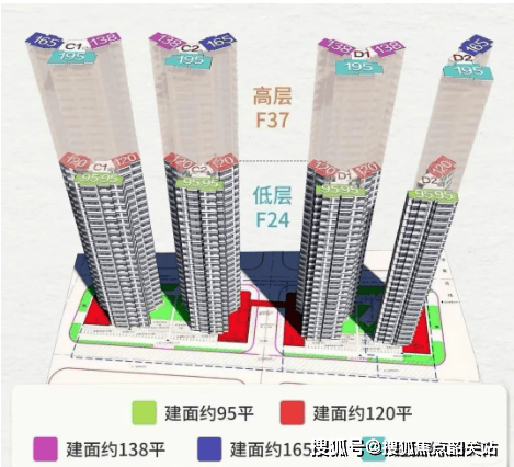 项目规划四栋37层高层住宅楼,分为高区和低区两部分,每部电梯独立运行,提升出行效率。主要户型包括: