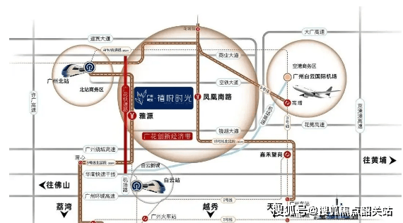 项目坐落于花都区南部广花新城核心区,紧邻白云,地理位置优越。交通配套堪称 “硬核”,紧邻在建的地铁 8 号线北延段雅源站,直线距离仅约 50 米,属于名副其实的地铁上盖盘。该线路建成后可快速衔接白云、天河等核心区域,大幅提升通勤效率,目前土建工程已累计完成 16%,7 座车站已启动土建施工。此外,社区配建公交首末站,广花快速路、空铁大道等交通干线环绕,自驾出行可便捷通达广州各区及周边城市,轻松融入大湾区生活圈。