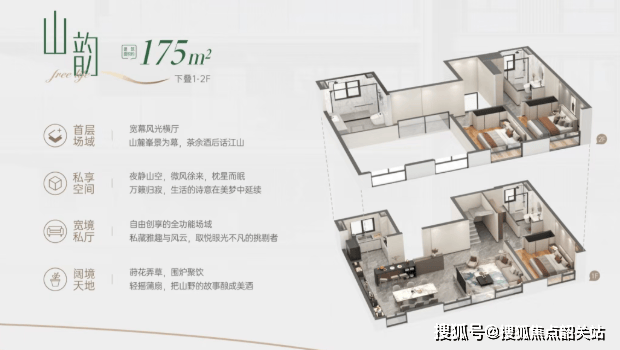 下叠产品(167㎡边户/175㎡中间户):赠送率极高,算上地下室可达三层使用空间。边户总价预计1100-1300万,使用率约300%,带专属绿地,一线望山看水;中间户总价约900万,性价比更高,且多一个卫生间。