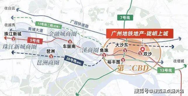 从交通体系来看,珑岄上城最大的核心价值在于地铁上盖属性。项目紧邻地铁5号线双沙站,部分区域距离地铁出入口直线距离约50米以内。TOD上盖住宅的价值优势在于可实现“出门即地铁”的通勤模式。5号线作为广州城市轨道交通主干线路,可快速连接珠江新城核心商务区、金融城商务板块以及城市东西向产业带。对于在中心城区工作的居民而言,交通时间成本显著降低。