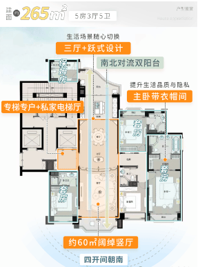 从130m²的大三房到265m²的超大平层五房设计,满足不同家庭的需求,每种户型都注重空间布局与采光效果,让居住体验更加舒适。