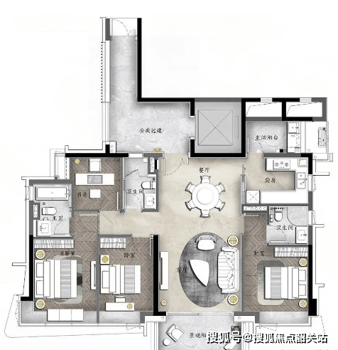 C户型:约140㎡南向园景大宅,超高性价比,三卧室朝南设计。