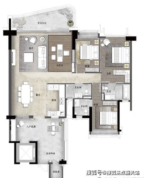 洋房户型:140㎡-270㎡四房双主套