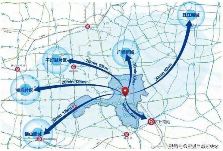 10分钟对接广州南站:佛山轨道2号线、南海新交通两条轨道直连广州南站,实现轨道交通零换乘;海怡大桥、番海大桥等跨江通道与南站片区路网无缝对接
