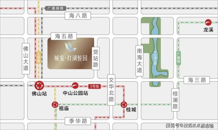 【城发灯湖悦园】项目位于佛山市禅桂中心,处于佛山的中轴线位置,享有千灯湖和祖庙双商圈的便捷辐射。东侧毗邻佛山市重要的高铁枢纽——佛山高铁站,西侧紧邻地铁3号线与5号线交汇,交通四通八达,能快捷通达广州及珠三角各大核心城市。周边的海五路作为该区域的主干道,未来全线贯通后,业主可实现5分钟直达千灯湖核心区。无论是周末购物还是商务出行,项目所处地理位置都能带来极大的便利。
