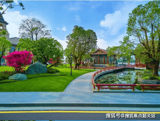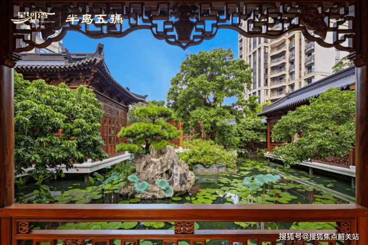 园林设计融合晋派建筑的恢宏与徽派建筑的精巧,非遗香山帮老工匠手工雕琢的满工雕花精美绝伦,木雕上的传统美学与历史典故栩栩如生;寻遍华南搜罗的飘水荔枝树、秋枫、香樟、特大桂花等名木,打造藏于园中的“名树博物馆”;约200多棵高大乔木、29组富贵绿石及英石搭配大量荷花水生植物,构建出大型亲水荷塘,园林与建筑美轮美奂,虽由人作、宛自天开。