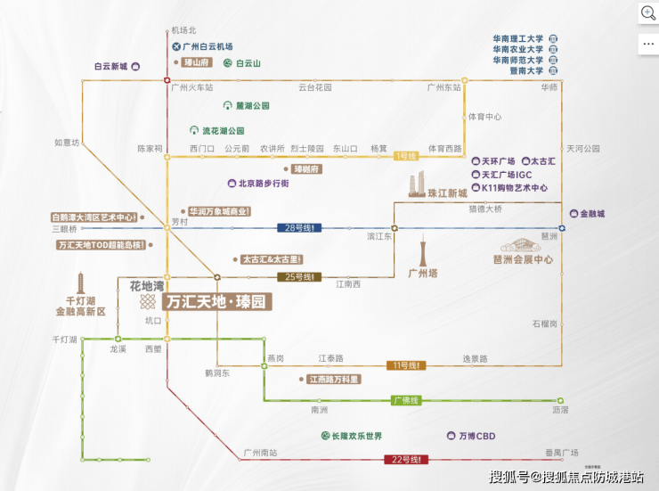 荔湾花地湾板块定位为“广佛同城枢纽”,坐拥白鹅潭CBD辐射红利,规划超200万㎡商业综合体及3条地铁线路(1号线、22号线、28号线)。项目周边3公里内覆盖万象城(在建)、太古里(规划)等顶级商业,未来价值可期。