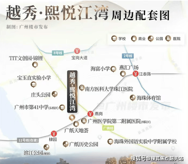 越秀熙悦江湾位于海珠区西部,地理位置优越,周边配套设施齐全。特别是距离广佛线燕岗站仅400米,距规划中的11号线棣园站仅250米,交通便捷。此外,项目紧邻多个成熟的商业圈和教育资源,生活便利度极高。