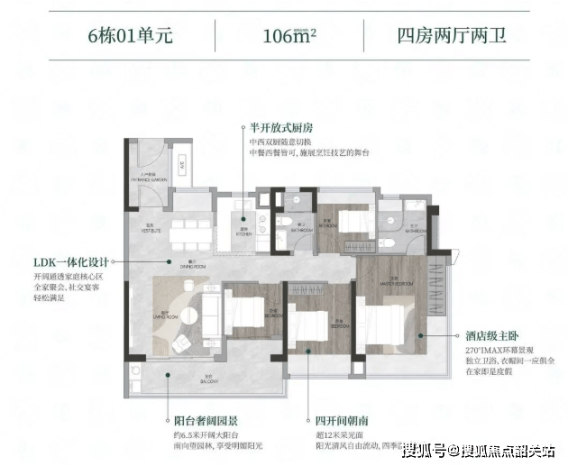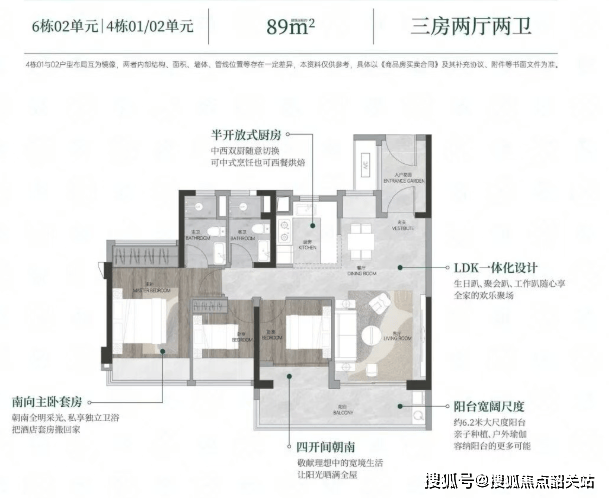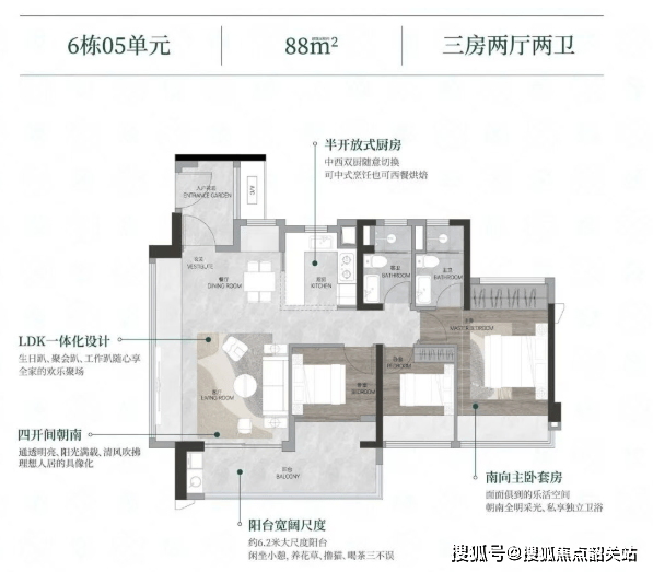 提供多种户型选择,包括88㎡小三房、106㎡三房和125㎡四房。各户型设计注重空间利用率和采光效果,如88㎡户型拥有6.2米宽阳台,125㎡户型则配备8.3米超级阳台,部分楼层可欣赏江景。