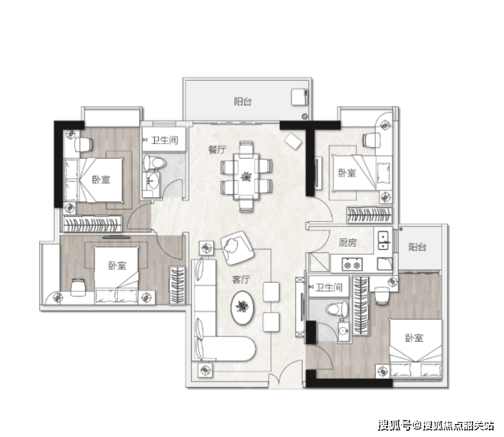 125-143㎡四房:南北通透、双阳台、收纳充足,三口 / 四口之家首选,改善优选;
