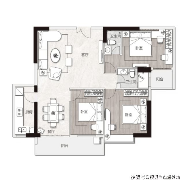 110㎡三房:经典竖厅、主卧套房、全明采光,低门槛入主越秀城芯半山,适配刚需改善家庭;