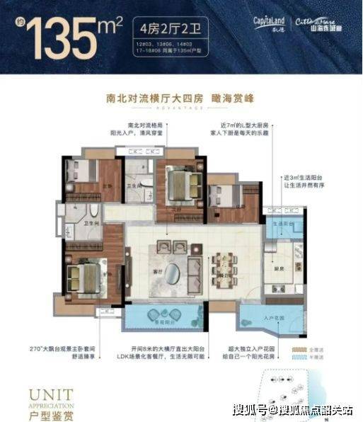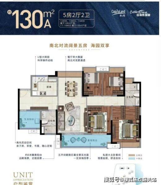 130-135㎡四至五房:横厅超6米,连接双阳台,主卧套房配置,南北通透;