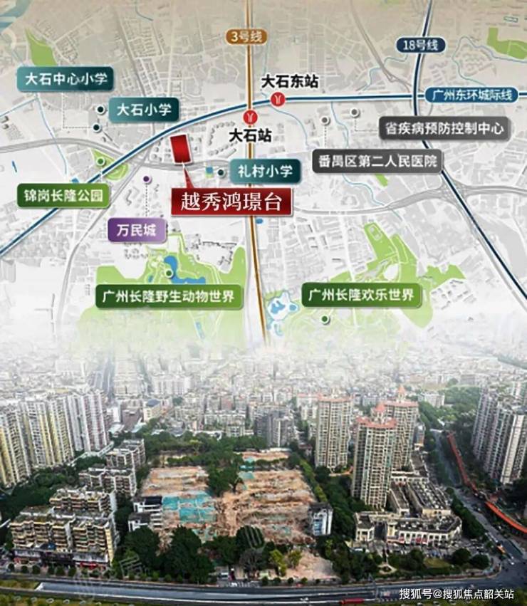 越秀鸿璟台的选址,绝非偶然,而是经过深思熟虑后的战略落子。项目位于广州市番禺区大石街南大干线北侧,这一地理位置堪称“天选之地”。它地处广州第三发展中轴线的关键节点,这条轴线不仅是连接广州中心城区与南部拓展区的大动脉,更是未来广州城市空间结构优化的重要支撑。在这里,城市的脉搏跳动得最为强劲,发展的机遇也最为密集。