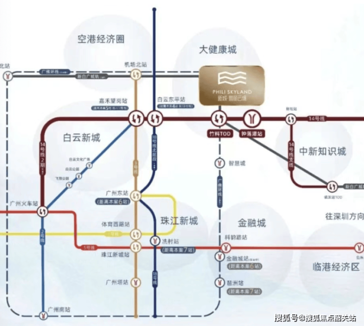 新白广城轨(在建): 同样可在竹料站换乘。1站即可到达白云机场,南向可通达东莞和深圳。这意味着业主可以轻松实现空铁联运,通达大湾区乃至全国。