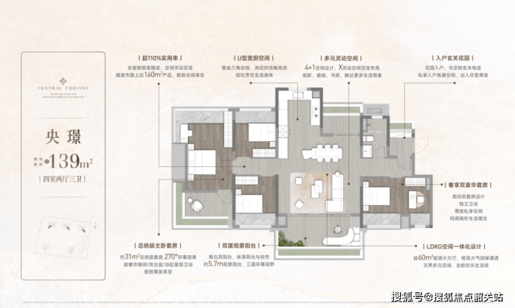 223㎡大平层:奢华生活体验,配备多个卧室和宽敞的公共活动区域,尽享城市美景。