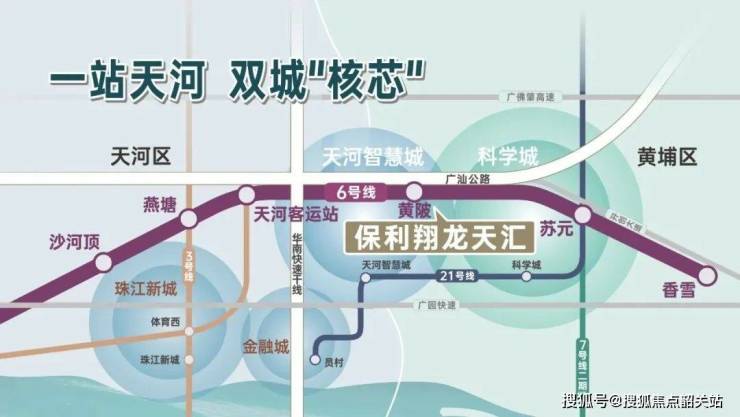 而与科学城和天河智慧城仅有5公里距离的保利翔龙天汇,就处于两台强力引擎的交汇处,坐享产业发展带动城市配套和土地价值提升的红利。更直接承接天河和黄埔大量高净值人群居住需求的外溢。