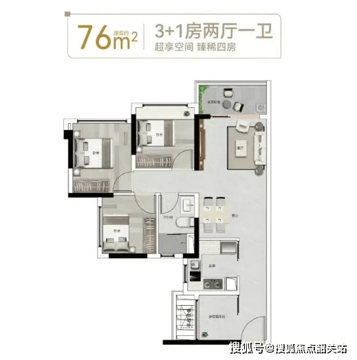 尤为亮眼的是,76㎡户型竟能实现“3+1房”格局,88㎡更做到南北通透、双卫配置的3+1房,这在过去几乎难以想象。对于预算有限但又渴望多房功能的家庭来说,这样的产品无疑极具吸引力。