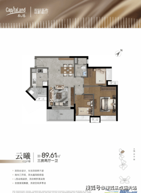 荔湾凯德双桥新作屹立于城市中轴之上,是大坦沙岛少有的双地铁江景学区现楼可售项目。项目规划建设 3 栋住宅楼及少量底商,主力户型为 89-128㎡三至四房,全南向或东南向布局,三梯五户低密配置。其核心优势在于 “89㎡三房三开间朝南 + 128㎡四开间南向四房 + 阳光电梯厅”,对比周边项目,户户向南保障采光通风,中高层视野开阔无遮挡。作为凯德集团新加坡式岛居力作,现楼交付规避期房风险,这种 “全南户型 + 江景学区 + 现楼清栋” 的产品稀缺性突出。