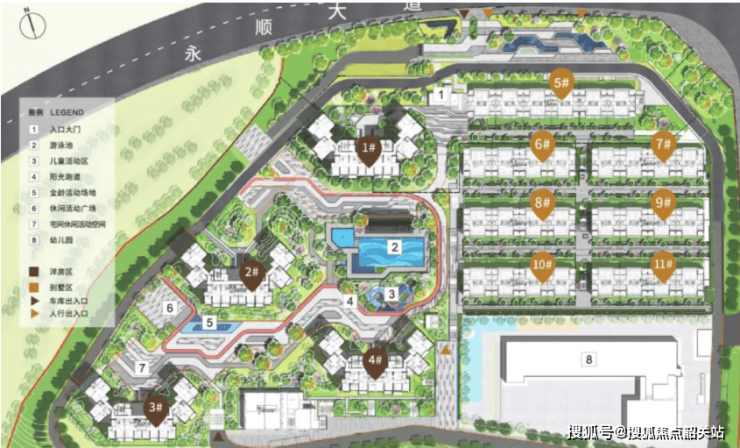 社区公区配套丰富完善,打造全龄段、全时段休闲空间,满足不同年龄段业主生活需求。配置社区赛事级泳池,标准赛道设计,兼顾日常健身与休闲娱乐,是广州少有的配备专业级泳池的社区;规划全氧慢跑道,沿园林、水岸延伸,晨跑夜跑皆惬意;打造林间会客厅,为业主提供会客、社交、休闲的私密空间;建设全龄儿童乐园,配备滑梯、攀爬架、沙池等丰富设施,守护孩子童年欢乐。此外,小区整体地势抬高约 12.5 米,打造约 5 米挑高入户大堂,尽显居住尊崇感。