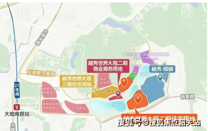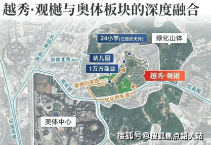 目前,项目距离最近的地铁大观南路站约 2km 。周边业主主要经悦景路出行,悦景路连接珠吉路与奥体路,进而可连通广园快速、大观南路等主干道,上下高速便捷。令人期待的是,悦景路牛奶厂段已动工拓宽,预计 2025 年建成通车,届时交通短板将得到极大改善。此外,世界大观将新建道路接驳奥体路与机场二高速,进一步提升区域交通便利性。