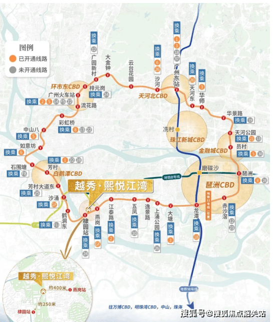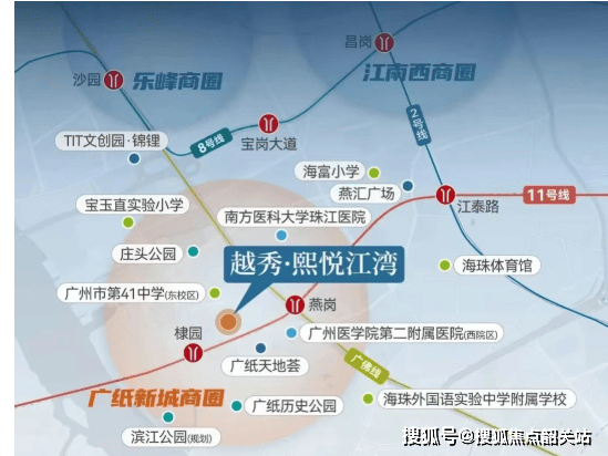 - 交通方面优势突出,是妥妥的双地铁盘。距离广佛线燕岗站直线约400米,步行约600米,耗时约10分钟;距离在建的11号线棣园站直线约250米,步行约600米,大概8分钟。从燕岗站出发,8站可达琶洲,3站到沥滘换乘3号线可到珠江新城;乘坐11号线,能便捷前往琶洲、白鹅潭、天河北、金融城等多个商圈,且11号线换乘站点众多。自驾方面,周边有工业大道、昌岗路、鹤洞桥、环城高速等干线,无论是公共交通还是自驾,去往珠金琶等地通勤时间基本都在30分钟左右,上下班高峰期地铁出行更为便捷。售楼处电话:400 - 622 - 0051。