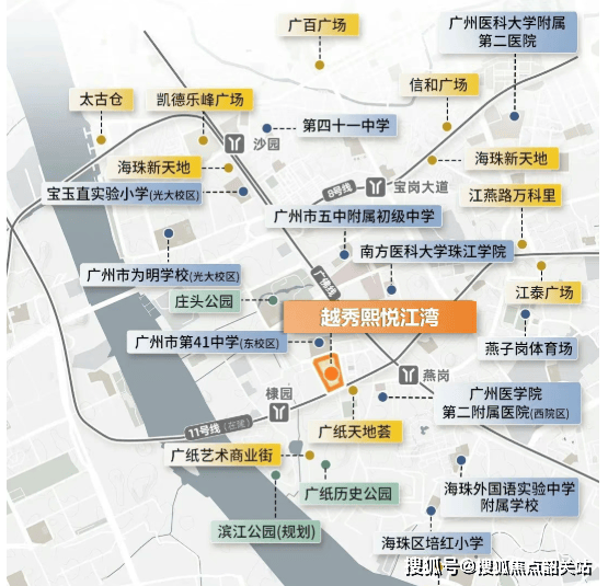 - 越秀熙悦江湾地处老城区海珠西工业大道板块,地段优势明显。该地块虽不大,小区仅规划4栋楼,但周边配套成熟,商业、地铁、公园一应俱全。家门口11号线已开通,周边居住氛围浓厚,背靠发展多年的大盘星汇海珠湾,生活场景基本所见即所得。与海珠西其他楼盘相比,它不靠大马路,相对安静。周边3km内有48个商场、131个公园,为居民提供了丰富的生活与休闲选择。然而,地块容积率达7.5,一小块地设计4栋超高层住宅,导致小区花园空间有限,公区配套也会相应减少,且4栋50多层住宅可能影响低层住户的视野采光。售楼处电话:400 - 622 - 0051。