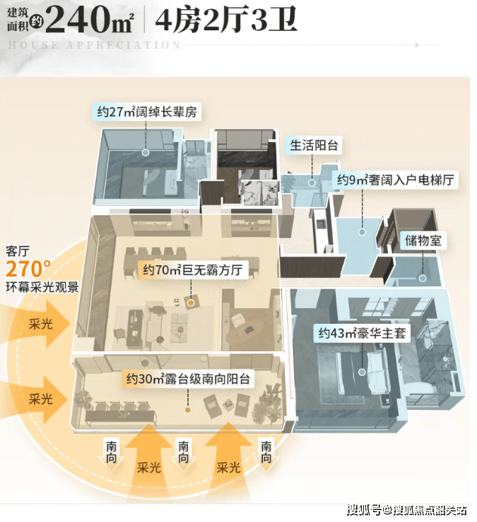 目前在售的主要楼栋包括6-8号楼、10-15-16号楼以及1-3号楼,面积从120至240平方米不等,满足不同家庭的需求。其中,最重量级的是T5栋,全盘仅此一栋,独栋板楼设计,每套户型均为约240平方米的大平层,专梯专户,户户三面赏景。此外,T7栋央景楼王也是不容错过的选择,主打建面约140平方米户型,景观极佳。