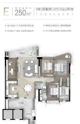 A户型:270㎡环幕江景四房,配备约9米超大阳台,一线望江无遮挡。
