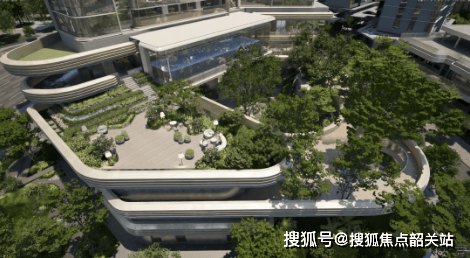 『琶洲·樾|华樾』内部配套设施一应俱全,架空四层楼用作会所,形成了10多米的高度差,首层住户相当于一般楼层的5楼,既保证了小区的私密性和尊贵感,又增加了景观层次。会所内设有健身房、瑜伽室、私宴厅等多种功能空间,满足业主多样化的生活需求。此外,项目还打造了一个空中花园——「船舷花园」,退台式设计结合曲线营造优雅弧度,极具艺术美感。