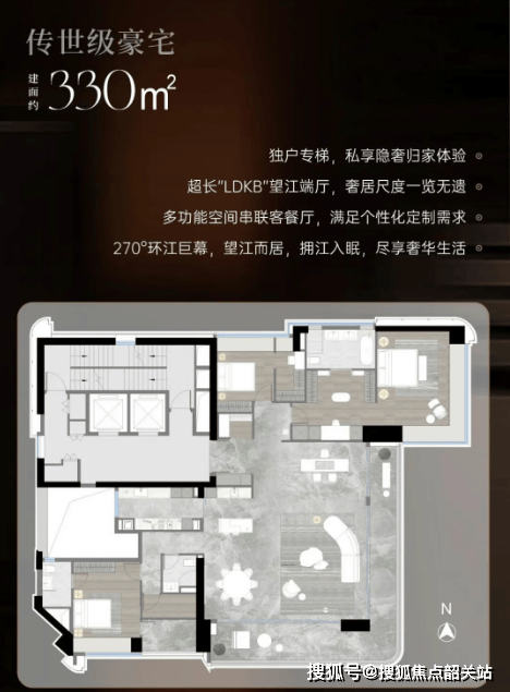 330平方米:豪华大气,五房两厅四卫设计,配备大面积露台,尽享无敌江景。