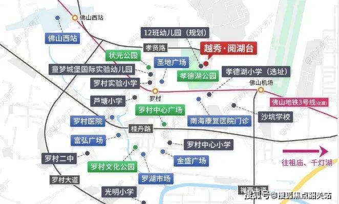 项目位置:狮山镇罗村孝德湖东侧、禅西大道北延线西侧小区配套:社区南北两侧,分别配建一所12班幼儿园和公交站场;社区内,还规划了铂金会所,涵盖星空泳池、私宴厅、书吧、健身房、瑜伽室等,功能齐全。越秀阅湖台地处千灯湖西,独享“城芯+湖心”双中心的地段价值。从千灯湖起步,城市新重心西移至更开阔的佛山西站枢纽新城,这里不仅规划恢弘、交通发达、产业强劲,且起点极高,官宣定调为“下一个千灯湖”。作为全国千亿大镇,狮山GDP占南海区的1/3,超20家世界500强企业撑开天际线,在工业物联、人工智能、科创等龙头产业上展示出勃勃雄心。交通上,佛山西站枢纽新城汇聚了“2高铁2轻轨4地铁”的立体交通网。其中,项目距离佛山3号线罗村站(在建)直线距离仅约800米,未来3站到禅城、5站直抵千灯湖,串联广佛腹地。家门口就有一所12班幼儿园(项目配建,规划中),步行数分钟,还有罗村实验小学、童梦城堡国际实验幼儿园、芦塘小学等,教育资源丰富。(非学位承诺,学区地段划分请以教育局公布为准)另外,今年年初,选址孝德湖公园南侧的孝德湖小学(规划中)启动招标,规划36个班,未来新增1620个学位,预计最快今年年底动工建设。如果想逛街购物,周边还有圣地广场、金盛广场、富弘广场,吃饭、看电影、做个SPA如此简单。更重要的是,项目周边交通四通八达,通过桂丹路、海八路快速抵达千灯湖,一脚油门即可抵达南海万达广场,中海环宇城。项目周边是南海区罗村医院,坐落于南海区狮山镇罗村社会管理处城区中心,地处佛山西站的核心圈,交通十分便捷,是一所集医疗、教学、预防保健、康复、健康教育和计划生育技术服务于一体的公立二级甲等综合医院越秀·阅湖台坐落在孝德湖公园东侧,将社区与公园无界相连,以岭南传统园林为灵感范本,并用现代手法重新演绎,师法自然,打造两轴双园十二景,景观美不胜收。徜徉在社区之中,移步换景,处处皆是鸟语花香。家与孝德湖公园仿佛融为一体,犹如一幅美丽的山水画卷。