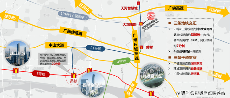 21号线大观南站:3站可达科学城,5站即可转乘5号线到达珠江新城。