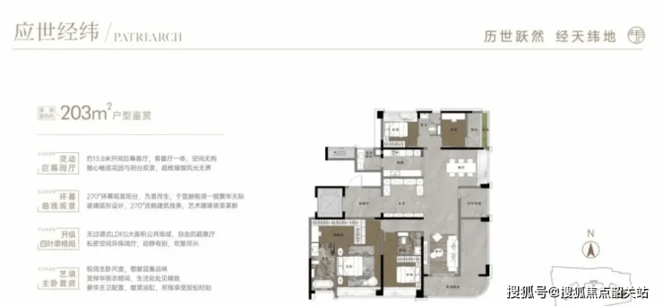 253㎡旗舰四房:两梯两户,3.3米层高,南北通透竖厅衔接10.1米超长阳台,可打造家庭聚会、观景、园艺多功能空间。主卧+主卫均带270°弧形采光面,尽揽城市天际线。