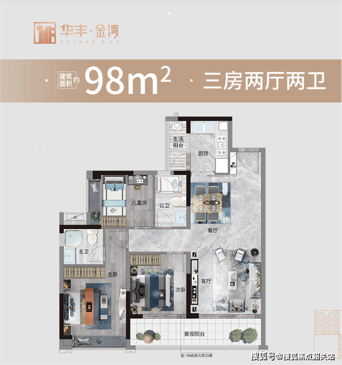 华丰·金湾主打改善型居住需求,主力户型涵盖建面约98㎡三房至约196㎡五房,产品线丰富,兼顾首次改善与高端改善客群。其中,约98㎡三房两厅两卫户型布局紧凑高效,功能分区合理;约115㎡与125㎡四房户型则强调空间尺度与家庭互动性,主卧套房设计、双卫配置提升居住舒适度;而约143㎡及196㎡大平层产品,则以奢阔尺度打造多代同堂的理想居所,部分户型拥有南北通透、双阳台或景观视野优势。虽未明确提及装修标准,但作为定位中高端的住宅项目,其空间设计注重实用性与未来生活场景的融合,充分满足现代家庭对功能与美学的双重期待。