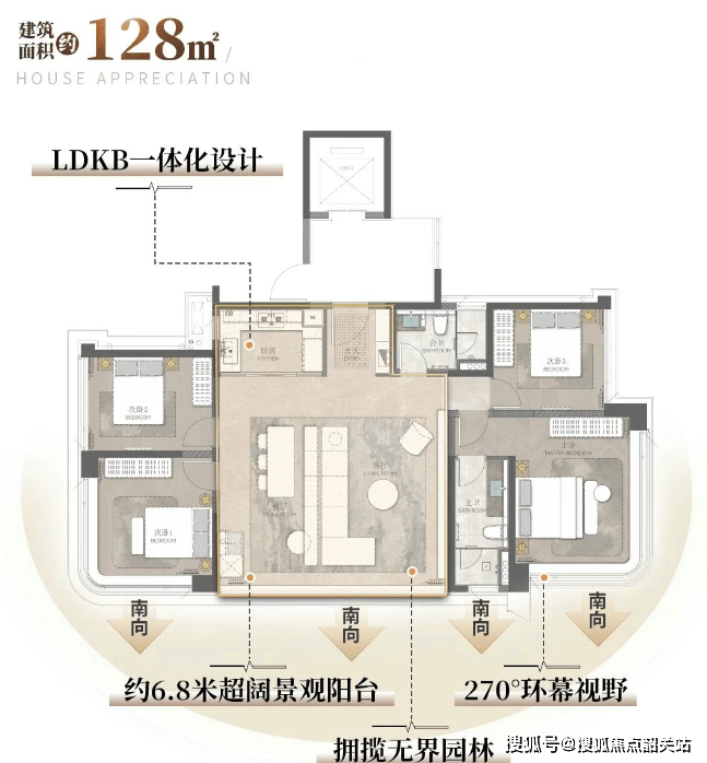 项目推出的户型面积约为128至219平方米,使用率高达约102%。部分户型设计有北向望江的主卧,并配备了超大开间和L型阳台,最大化地利用了江景资源。此外,板楼设计确保了每户都能享受到宽敞的景观视野。
