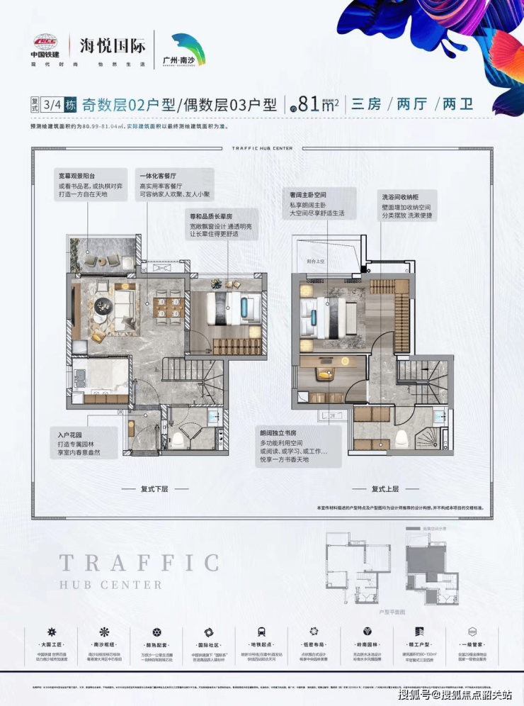 中国铁建・海悦国际坐落于南沙万顷沙交通枢纽 TOD 板块,作为世界 500 强中国铁建打造的 “国际系” 标杆项目,以 “平层 99-131㎡/ 复式 81-101㎡三至四房、30 分钟湾区生活圈、岭南风情园林、国家一级物业” 为核心亮点,成为南沙炙手可热的高性价比新房优选。项目依托南沙枢纽的交通红利与千亿级产业集群,融合低密度社区规划、全龄段配套与高使用率户型,为追求便捷生活与资产增值的家庭,献上一处兼具居住舒适度与发展潜力的理想居所。