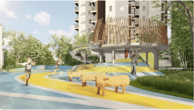 园林配套:打造岭南风情园林,以现代中式设计风格融合岭南水乡文化理念,一步一景,营造赏心悦目归家体验;片区首创中央无边际悬浮式泳池,集艺术化、生态化于一体,成为社区内的景观亮点与休闲胜地。